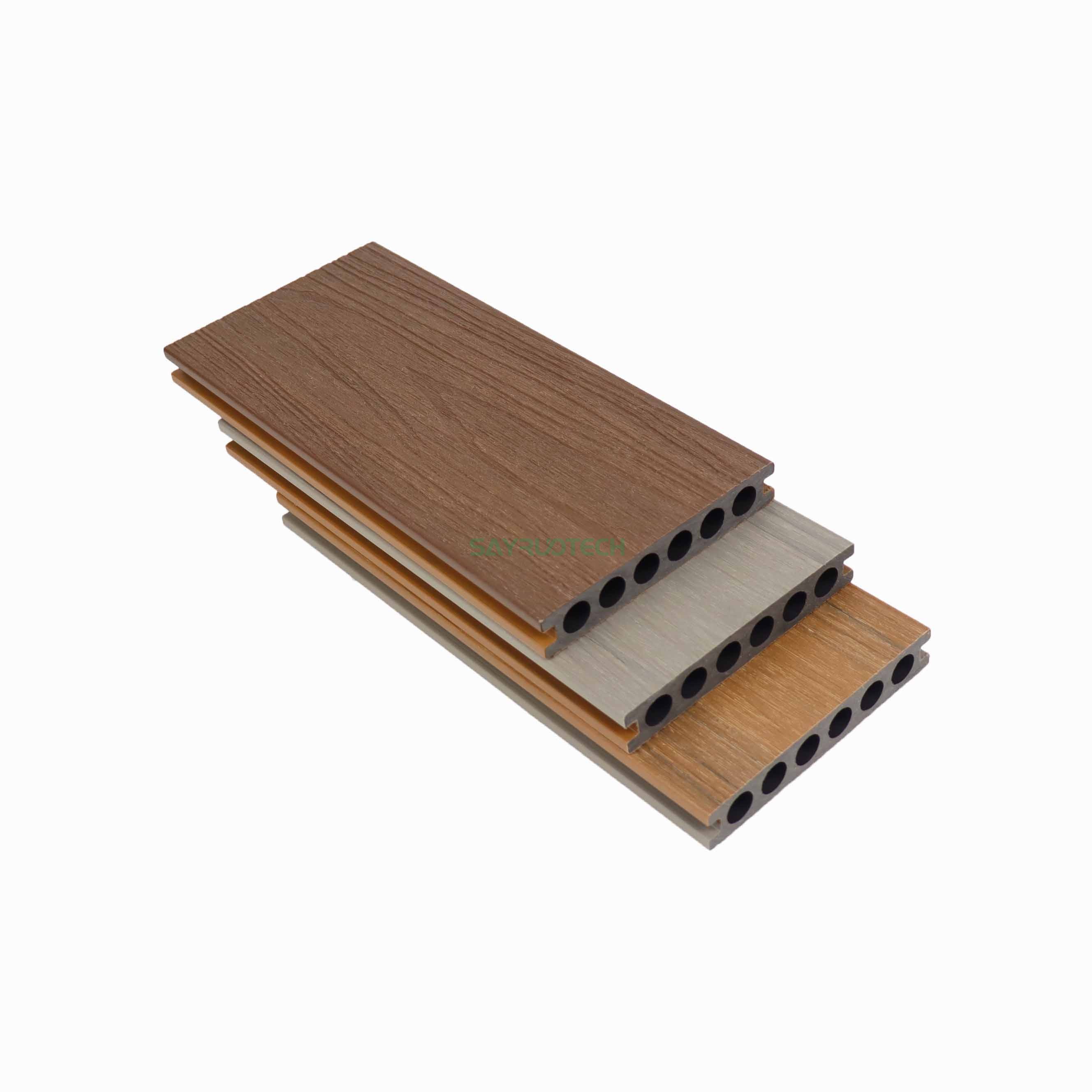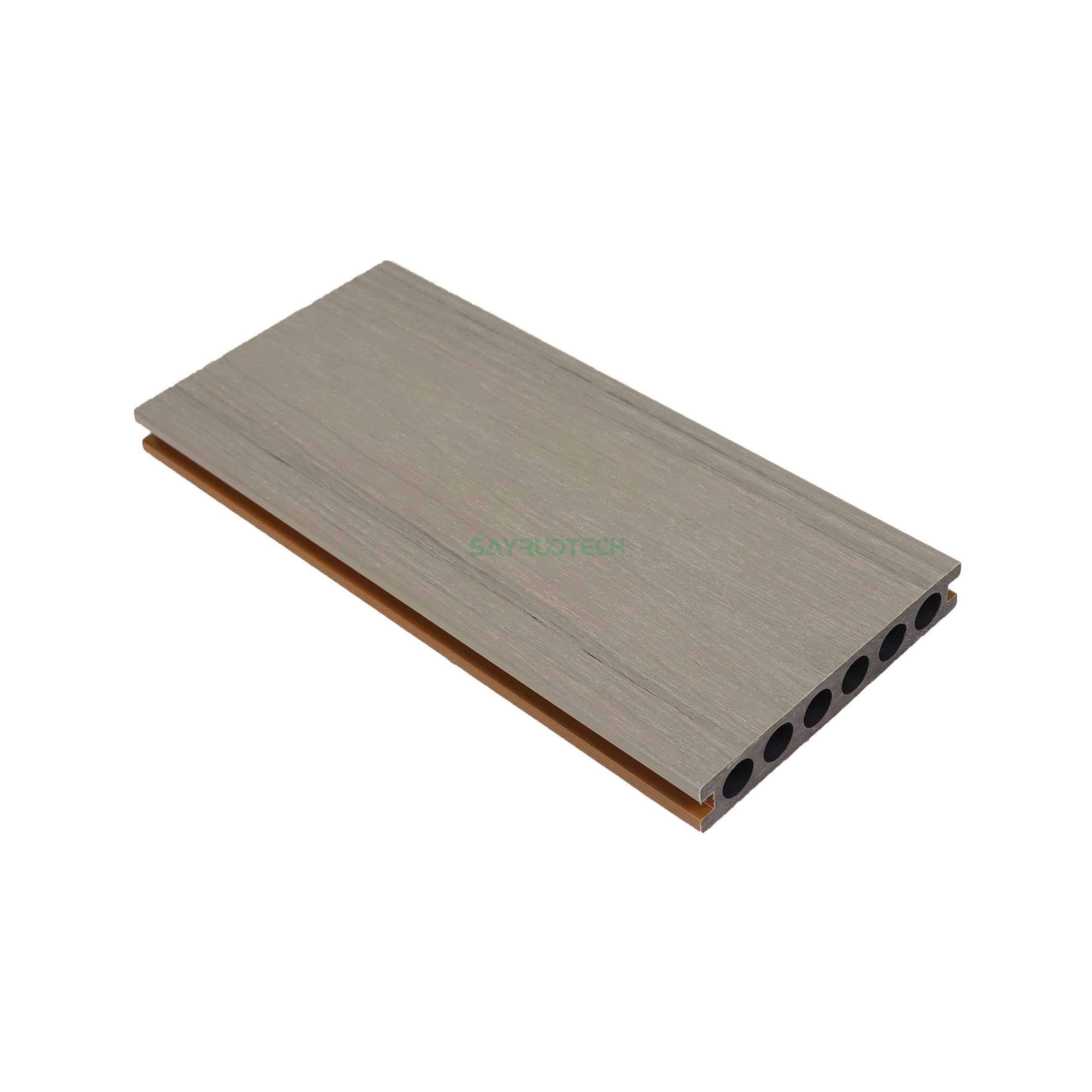 Wuhu/NanjingThis solid WPC co-extrusion decking features a robust 23mm thickness and a practical 138mm width, striking the perfect balance between sturdiness and seamless installation—its solid core ensures enhanced load-bearing capacity, making it suitable for both residential and commercial use. To cater to diverse project needs, full customization is available: choose from flexible lengths to minimize waste and fit unique spaces, select from a wide range of colors (including natural wood tones and contemporary shades), and opt for realistic wood grain patterns, embossed textures, or smooth finishes to align with your design aesthetic. The co-extrusion process adds an extra layer of protection, boosting its resistance to water, scratches, and UV damage, while the solid structure eliminates hollow spots, enhancing overall durability and reducing noise underfoot.