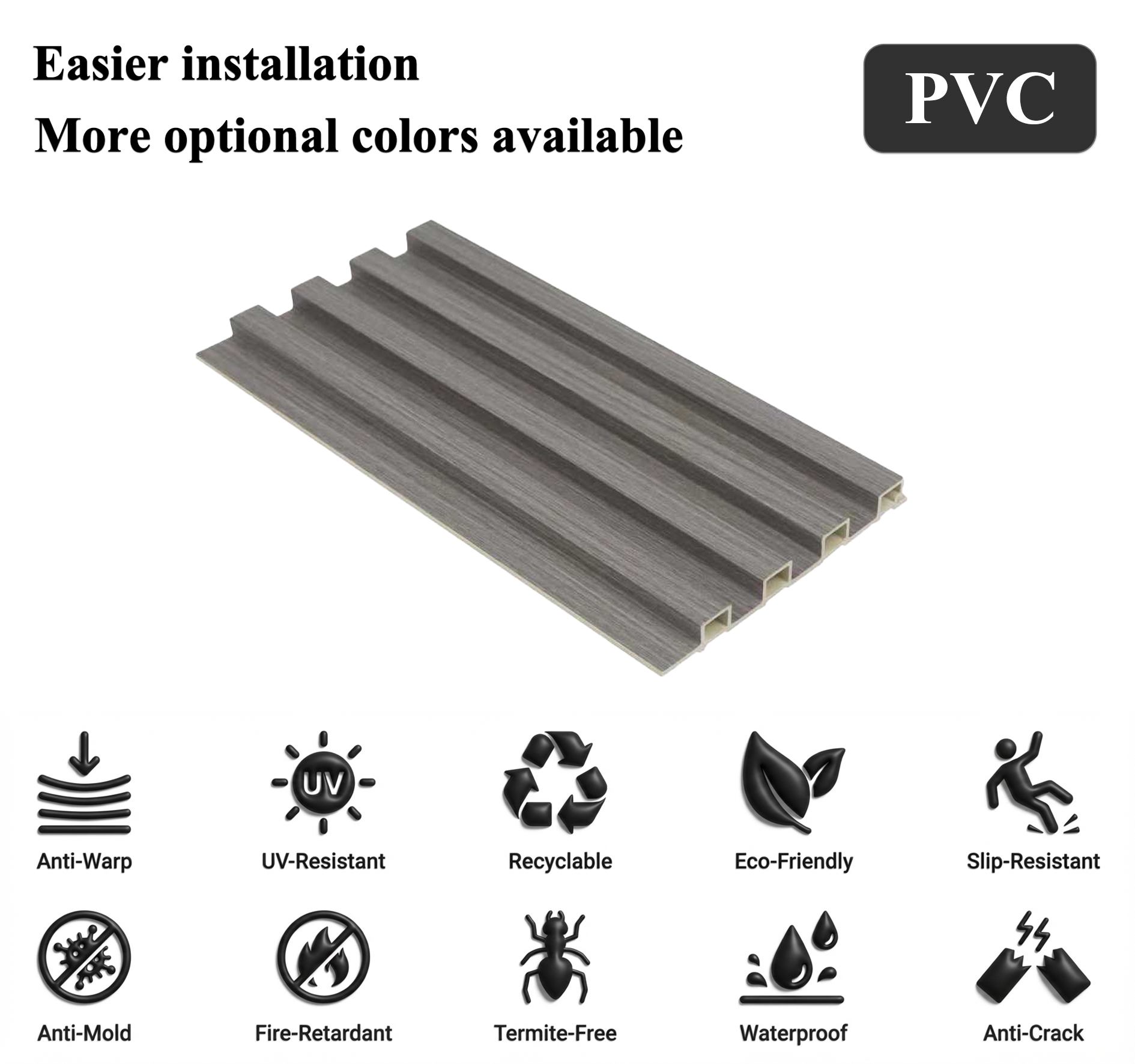 Revamp outdoor and exteriors seamlessly with our grooved waterproof PVC wall cladding. Its distinctive grooved texture injects depth and elegance into diverse settings — from residential homes to commercial spaces. Engineered for all-weather durability, this PVC cladding repels water, blocks UV rays, and withstands temperature fluctuations, making it perfect for outdoor uses like patios, balconies, or humid zones. Lightweight yet robust, it ensures easy installation and minimal maintenance, freeing you from constant upkeep. Blend aesthetic charm with lasting performance — let our grooved PVC wall cladding redefine your space’s style and longevity.
